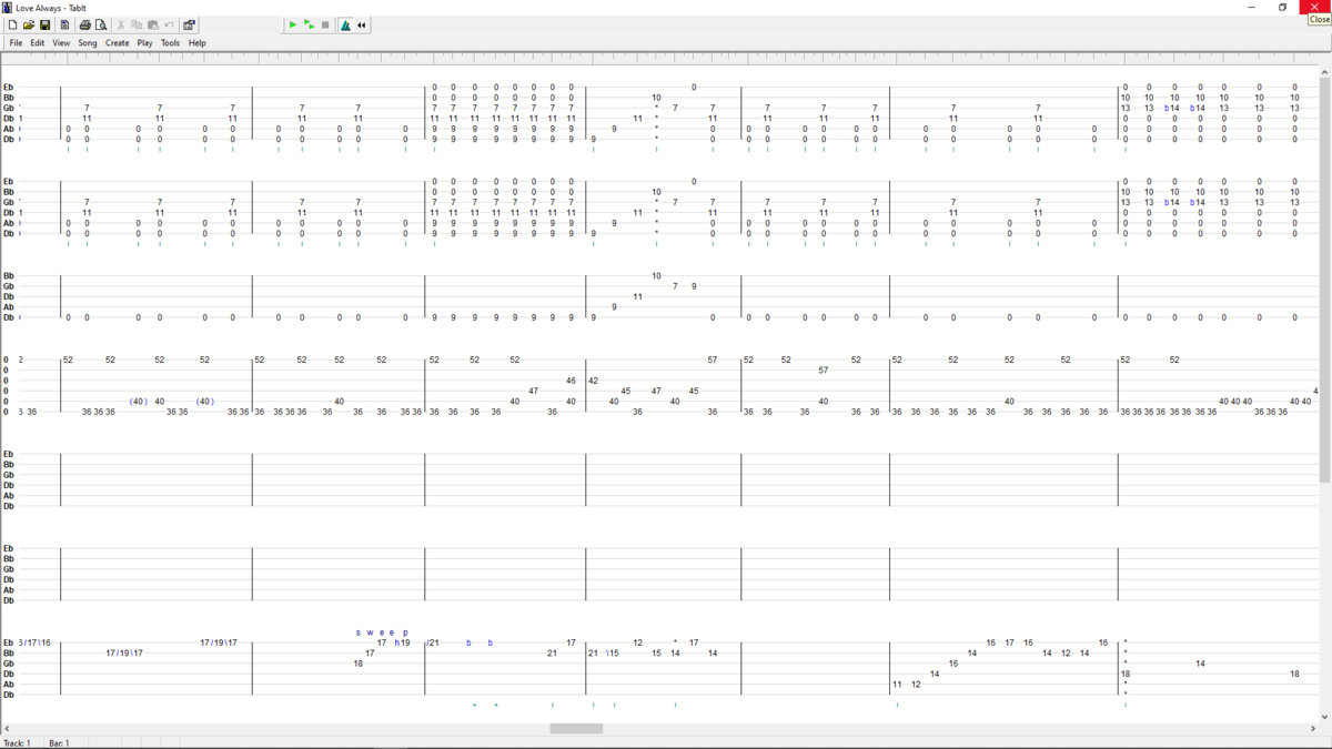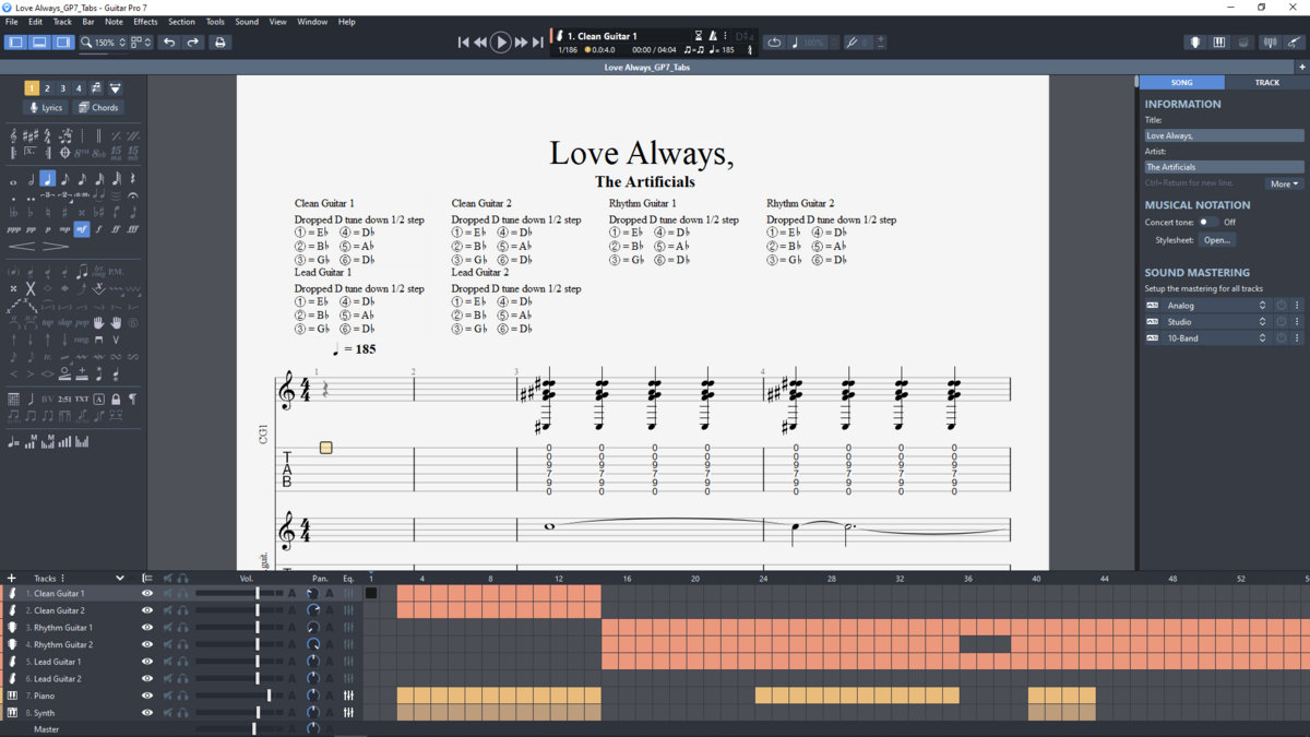 This tab file will work in Guitar Pro 5, 6, 7, and Tabit.